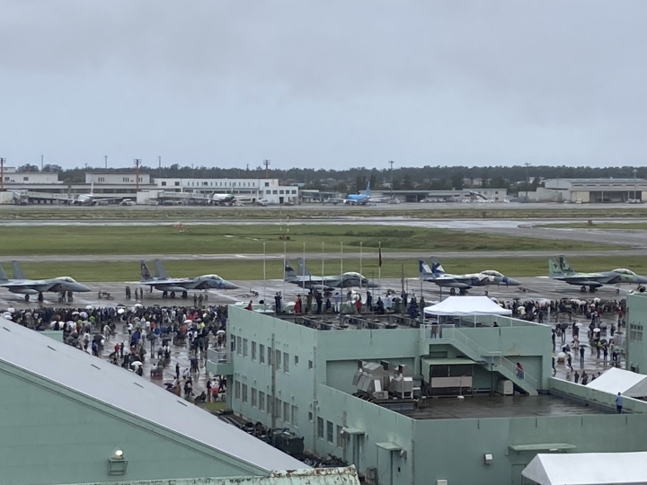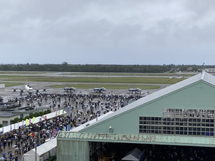 令和7年10月5日㈰、石川県・小松市に所在する航空自衛隊小松基地を訪問し、航空祭関連行事に出席させていただきました。天候はあいにくの雨模様でしたが、来訪される観客の方々は多かったように思われます。また基地周辺は交通規制が厳しい中、遠方から小さいお子さんを連れて徒歩で基地に向かわれるご家族もおられたぐらいです。